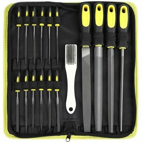 【Limes et Râpes pratiques】 : Precision Metal Jeu de limes de différentes formes et tailles, comprenant 4x limes en acier allié de 310 mm (avec poignée), 12 limes à aiguilles de 150 mm (avec poignée), 1x brosse de nettoyage.