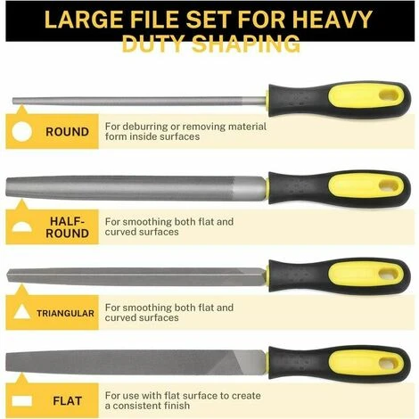 【Poignées ergonomiques en caoutchouc】 : Les poignées à prise souple sont fermement fixées à la lame de lime et reposent confortablement dans la main, ce qui permet d’économiser du travail et d’être en sécurité. Remarque: l’huile de protection contre la