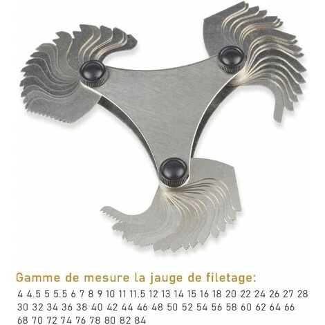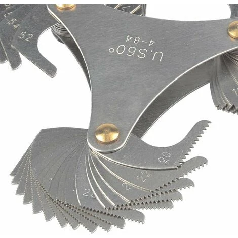 couleur comme indiquéTaille:10*10*10CMPoids:300 grammes[Spécifications] Outil de mesure (51 feuilles américaine Jauge de filetage), taille:60*60mm. Plage de mesure: 4-84[Exquis et Pratique] Outil de mesure de filetage, n’occupe pas d’espace et pratique à transporter[Échelle Claire] Chiffres précis et clairement visibles sur la surface de la jauge de vis[Excellente Qualité] Jauge de filetage est fabriqué en acier inoxydable de haute qualité et surface chromée, elle est donc robuste et durable, antirouille[Fonction] Jauge de filetage utilisée pour mesurer le pas du filetage et l’angle de filet