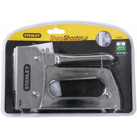 Depuis 1843, STANLEY® est le partenaire privilégié des professionnels. Leader du secteur en matière d’innovation, STANLEY® travaille aux côtés d’experts en outillage et développe des outils dans un souci d’excellence pour en faire «?LA RÉFÉRENCE PRO?». Fière de sa réputation d’excellence, la marque met tout en œuvre pour tester, concevoir et améliorer en permanence ses produits, afin de garantir une qualité et un fonctionnement optimal. STANLEY® a fabriqué certains des outils les plus innovants et utiles au monde, comme par exemple le rabot Bailey®, la lime Surform®, le mètre à ruban PowerLock® ou encore la toute dernière gamme de produits FATMAX®. Agrafer des matériaux comme du bois, des bâches, des fils électriques… fait partie des tâches qui peuvent être à réaliser par des professionnels ou des bricoleurs. L’agrafeuse TR110 corps acier 6-TR110 de STANLEY présente toutes les caractéristiques afin de répondre à leurs besoins. En effet, elle est conçue pour des travaux d’agrafage intensifs. Compatible avec des agrafes de type G de 6 à 14 mm qui sont très épaisses et se montrent robustes dans toutes les utilisations, elle permet de réaliser toutes les applications. De plus, il est facile de recharger l’outil pour les prochaines utilisations. Par ailleurs, l’agrafeuse TR110 corps acier 6-TR110 de STANLEY offre une grande résistance avec une conception en acier. Enfin, pour plus de compacité et un transport aisé, la poignée est verrouillable.