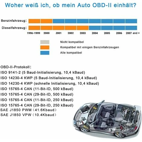 【LARGE COMPATIBILITÉ】 L’outil de diagnostic Bluetooth VAWcornic OBD 2 fonctionne pour la voiture avec port OBD2 et la plupart des véhicules à essence (modèle USA 1996 ou ultérieur). Il prend en charge les véhicules à essence basés sur l’UE 2000 ainsi que les véhicules Jap/ROK 2010. Il ne prend PAS en charge les camions, semi-remorques, camions à benne basculante, tracteurs, hybrides, véhicules électriques et autres véhicules utilitaires.