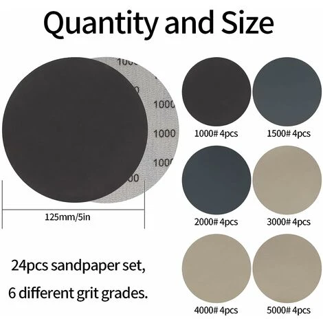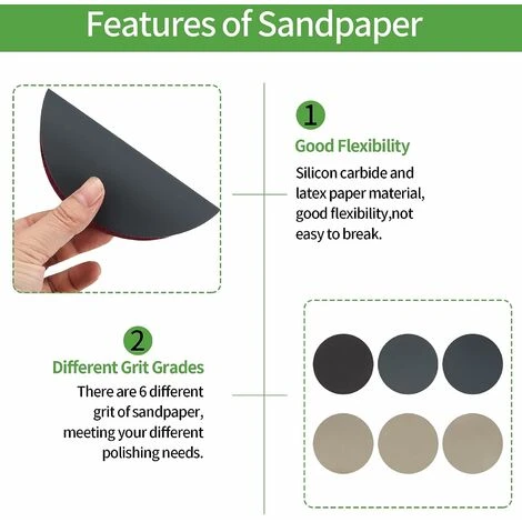 – Idéal pour les ponceuses électriques ou sans fil avec 6 grains différents : 1000, 1500, 2000, 3000, 4000, 5000.