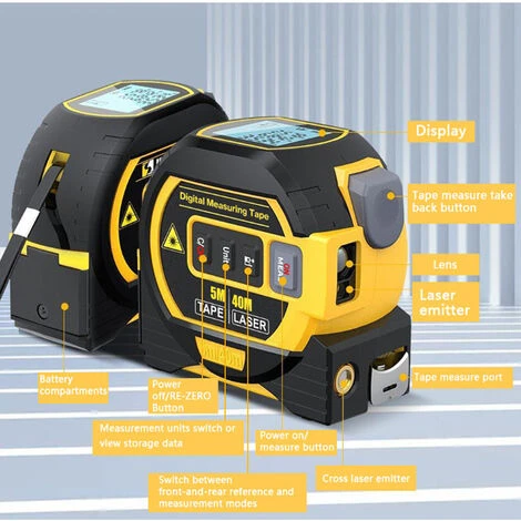 [Trois rouleaux laser à un laser] Ce laser roule combiné avec une mesure laser de 131 pieds / 40 m et des mesures de ruban de 16 pieds / 5 m et un câblage croisé de 32 pieds / 10m à 90 °. Pas assez précis. C’est un rouleau laser[Ruban de verrouillage automatique] La position sera automatiquement verrouillée après que le ruban adhésif soit retiré. Appuyez simplement sur le bouton gris pour rebondir automatiquement. Il est très pratique et sûr et ne vous blessera pas. Vous pouvez utiliser votre ruban adhésif et votre clip pour transporter facilement n’importe où. Transport fort et durable et pratique.[Écran rétroéclairé par LED et stockage de données] Le grand écran rétroéclairé à LED peut vous aider à lire clairement les nombres de tâches laser, même dans un environnement brillant ou un environnement sombre; le stockage jusqu’à 20 valeurs mesurées, les mesures de ruban laser automatique arrêtent automatiquement l’alimentation, la puissance économise.[Modèle multifonctionnel] Canal de bande laser numérique pour la mesure de la zone, la mesure du volume, la mesure de Pythagore, la mesure double Pibagras et le laser croisé pour répondre à tous vos besoins.[Haute précision] Précision de mesure laser: +/- 2 mm, qui peut être mesurée en continu. Lors du déplacement, vous pouvez lire la distance précise dans la plage effective. Sortie laser de classe II <puissance de sortie 1MW.
