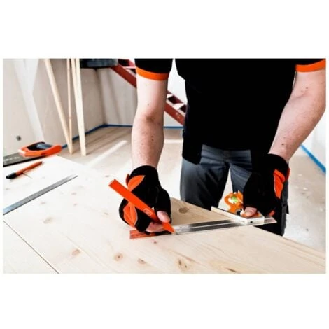 Équerre à coulisse simple d’utilisation, mesures métriques et impériales. Niveau à bulle et tire-lignes intégrés. Marquage à 45 et 90°.