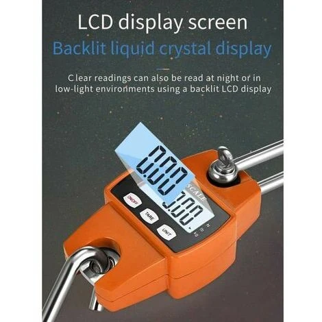 Description du produit【ALIMENTATION ÉLECTRIQUE】 Piles sèches 3×5 (Piles non incluses).【BALANCE DE GRUE INDUSTRIELLE MULTIFONCTION】 Fonction de tare et fonction de verrouillage des données – Lorsque la charge est stable, l’écran verrouille le poids pour la lecture; indications de faible (faible) et de surcharge (O-Ld); 120 secondes s’éteint automatiquement pour économiser la batterie.【UTILISATION DU PRODUIT】 s’appliquent au pesage des bagages, à la ferme, à la chasse, au pesage de collecte des déchets, au pesage de marchandises et à de nombreux autres objets lourds.【LE RÉSULTAT EST CLAIR】 Grand écran de vision nocturne haute définition LCD, les données peuvent être clairement lues, différents environnements lumineux Usage général.【MESURE PRÉCISE】 Capteur de haute précision, valeur de graduation: 0,1 kg , Commutation à 3 unités (N, KG, LB) Charge maximale: 300 kg.Spécifications du produit:matériau: aluminium, acier inoxydableTaille du produit: 29×8 .5×4.5cmPuissance: 3 piles AAA (Piles non incluses)3 modes / unités de pesage différents: kg / n / lbBalance suspendue avec écran LED.Capacité de 300 kg , Lisibilité de 0,1 kg.Pas besoin de s’arrêter automatiquement après 1 minute (par défaut).Utilisation à long terme, faible consommation.Ne pas surcharger, sinon la balance pourrait être endommagée.Les produits incluent:1 x Balance à grue numériqueRemarque:1: Lorsqu’il n’est pas utilisé pendant une longue période , assurez-vous de retirer la batterie et ne la stockez pas dans un environnement humide.2: Doit être nettoyé lorsque le corps de la balance a des taches, essuyer avec une serviette sèche est correct. ce produit n’est pas étanche. En raison des différents angles de prise de vue, il peut y avoir une légère différence de couleur. Je vous prie d’être excusé