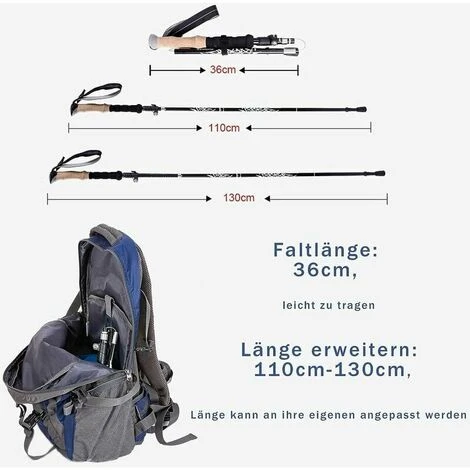 taille. Fournit des avantages aux personnes âgées et à ceux qui ont un poids supplémentaire. Rétractable de 36 à 130 cm, cela fait des bâtons de marche l’un des plus polyvalents et compacts de sa catégorie.