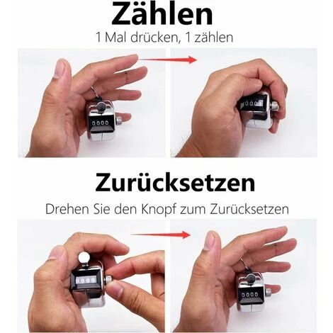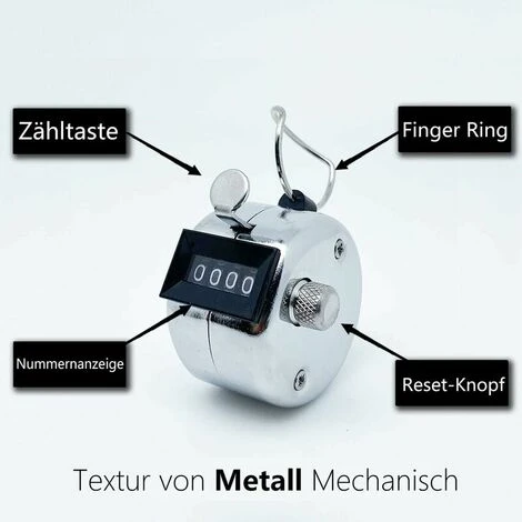 Compte de 0 9999, met un clic agrable et peut en outre tre utilis comme anti-stress. Rinitialisation facile grce la molette de rglage sur le ct droit. .