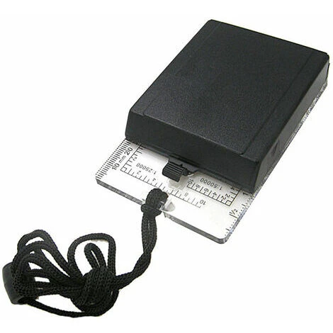 Plaquette de base avec loupe, Graduations métriques et jauge en pouces, Trou de roulement et visée arrière, Cordon de transport détachable avec fermoir à pression, Pas de piles requises.