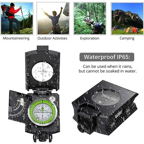 Multifonctionnel : couvercle pliable en métal, cadran flottant à l’échelle de 360°, prisme réglable imperméable et anti-chocs.