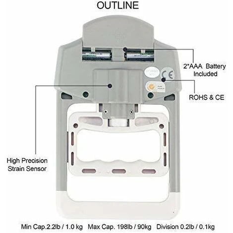Haute sensibilité – Équipé d’un capteur de mesure de haute précision, capter automatiquement et afficher une force de poignée maximale. Gamme de capacité: 90 kg / 200 lbs.