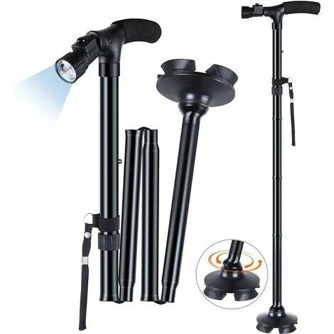 Canne de Marche Pliante avec Lumière LED, Hauteur Réglable Bâton de Marche Pliable pour Personnes Âgées