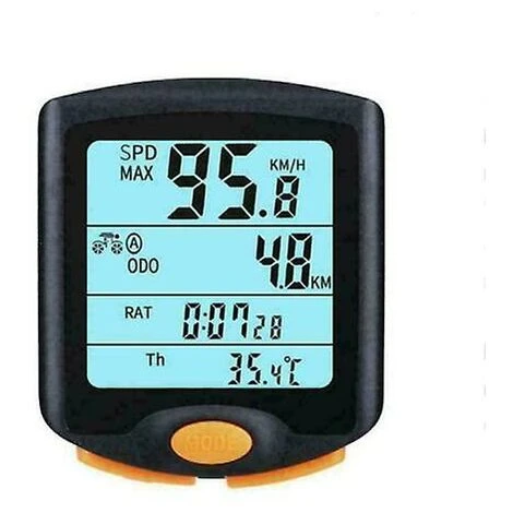 Caractéristiques : Matériel neuf et de haute qualité : ABSCouleur principale : NoirTaille : Environ. 55x46x18mm (L * W * H) Spécifications: Ordinateur de vélo multifonction, comprend l’affichage de la température ambiante, la fonction d’alerte de vitesse, la fonction horloge, la fonction chronomètre, etc. Un design grand écran et une température de travail super large Installation simple et réglage facile Conception élégante lumière extérieure, conception étanche à l’eau, portable , facile à démonter La conception séparée de la tête permet de la retirer à tout moment La tête peut être tournée pour faciliter l’installation de la barre transversale / poignée verticale Le tableau des codes surligné en blanc la nuit L’affichage à double fenêtre permet de visualiser facilement les données sans bouton de réglage fréquent; Silicone BoutonFonctions : affichage dynamique du kilométrage, du temps de cycle, de la vitesse en temps réel, du temps de trajet, des calories consommées, de l’heure actuelle, de la date actuelle saisirConseils de tension de batterie faible, de sorte que vous vous tenez au courant du travail de la table de codesUne fonction chronomètre vous permet de saisir avec précision le ConcoursConvient pour vélo 4 -40 Emballage inclus:1x Compteur kilométrique LCD sans fil