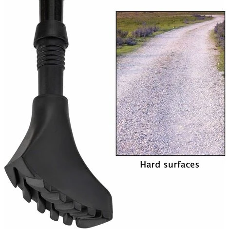 Les tampons en caoutchouc protègent la pointe en acier, absorbent les chocs sur les surfaces dures et réduisent le bruit. Convient pour différents supports, que ce soit en randonnée, trekking, voyage ou camping.