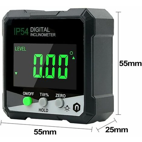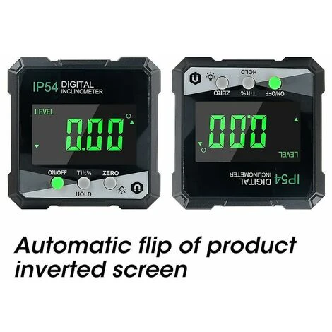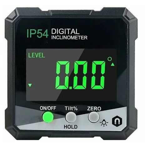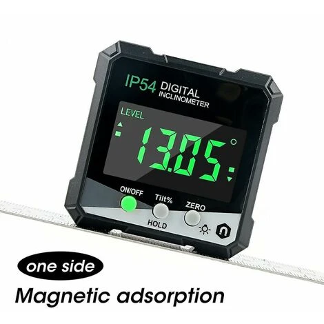 - Pratique et portableLe mini détecteur d’angle numérique est petit et léger, ce qui le rend pratique à transporter et à utiliser, il y a de puissants aimants intégrés sur la base de la jauge d’angle qui fixent la fixation à n’importe quelle surface de fer, appliquée à la scie table, scies à ruban, poteaux métalliques, tuyaux ronds, etc. rapidement et facilement. Cette jauge d’angle est particulièrement utile pour effectuer des travaux sur des échelles, des toits ou d’autres endroits dangereux. Haute précision La précision de la jauge d’angle est de 0,1, la plage de mesure est de 360 (4*90), la résolution de 0,1, la lecture peut être rapidement stabilisée et le nombre ne changera pas à plusieurs reprises. Angle absolu / relatif Notre inclinomètre est adapté pour mesurer à la fois l’angle absolu et l’angle relatif, ce qui rend ce rapporteur plus facile et plus rapide dans les applications quotidiennes et les applications d’ingénierie. Multifonction La jauge d’angle est conçue avec un grand écran LCD, un aimant puissant dans l’affichage bast et vertical, ce qui facilite et clarifie la lecture des valeurs.