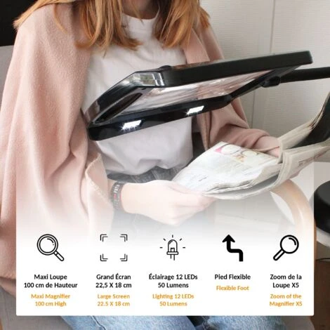 Rectangulaire Grand Format : Loupe de 25.5 x 19 cm – Pied de 58 cm –