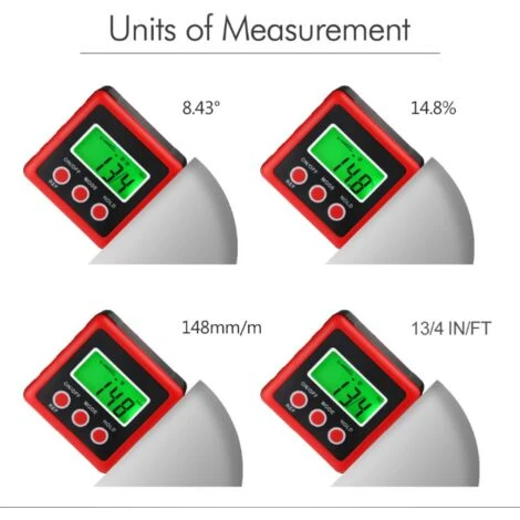 [Règle angulaire numérique] : La règle angulaire numérique a une plage de mesure de ±180° (0-360°), est petite, légère et facile à utiliser, conçue pour ajuster ou vérifier les angles relatifs entre les surfaces, et peut également être utilisée comme un niveau réel numérique pour les points de fixation. [Affichage LCD] : la valeur peut être facilement lue sur l’écran LCD.