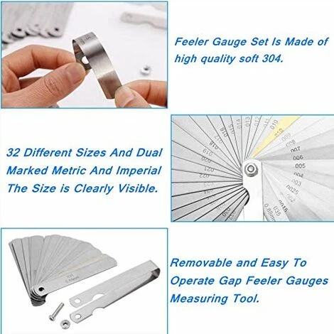 ✔Jeux de cale soupape Plage de mesure: 0,0015 inch/0,04 mm à 0,035 inch/0,88 mm.