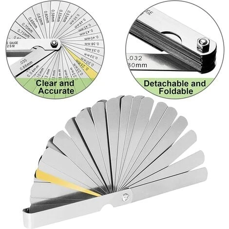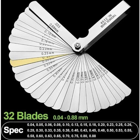 Jauge d’épaisseur fabriqué en acier inoxydable avec 32 lames d’épaisseur différentes. Pliable, facile et pratique à emporter et à ranger