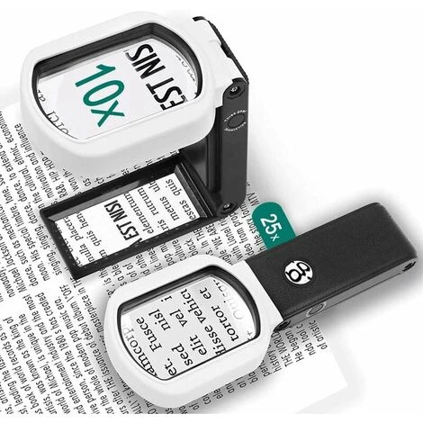 Grossissement 25X 10X et 9 lumières LED : loupe de lecture 25X 10X avec 7 lumières LED et 2 lumières UV, 3 modes d’éclairage à intensité variable (froid, chaud et mixte) peuvent être commutés selon différentes conditions d’éclairage pour réduire la fatigue visuelle, ce qui est idéal pour les gens. atteints de dégénérescence maculaire ou de myopie.