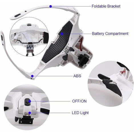 Les lunettes sont également équipées d’une lampe à 2 LED, qui fonctionne avec 3 piles AAA (non incluses). Assurez-vous que vous pouvez travailler dans un environnement sombre.