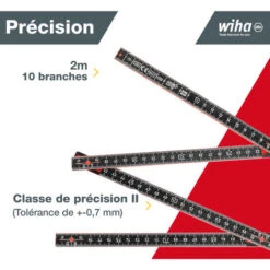 Mètre Pliant Fibre De Verre Jaune 10 Branches – 2m – Lot De 1