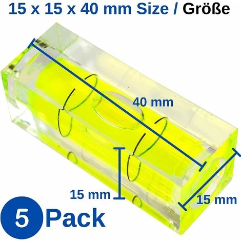 Niveau à Bulle, Lot De 5, 15 X 15 X 40 Mm, Niveau à Bulle De Précision Avec Bulle D’air, Mini Niveau à Bulle Pour Appareils Photo, Camping Et Caravanes, Niveau à Bulle, Niveau à Bulle