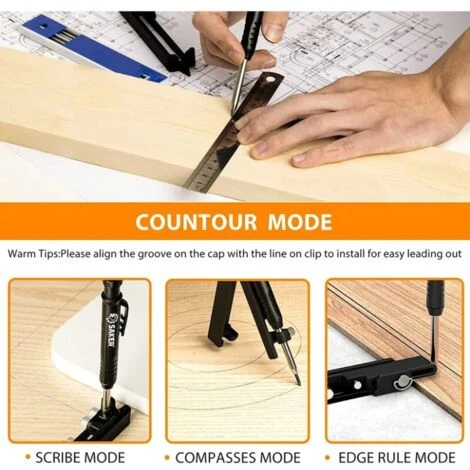 Ajustement Polyvalent – Vous pouvez changer sa forme selon vos besoins, il suffit de modifier le serrage du porte-crayon et de l’écrou pour obtenir différentes formes afin de répondre à la demande.
