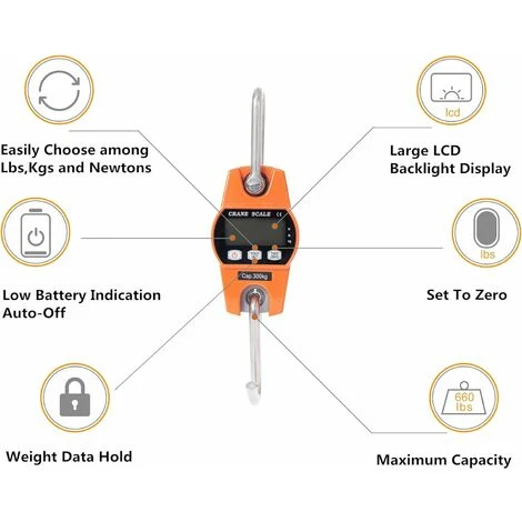 Peson 300kg avec coquille en aluminium, crochet et anneau spéciaux à haute résistance, cellule de charge en acier à haute précisio