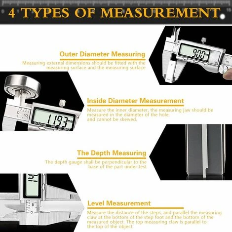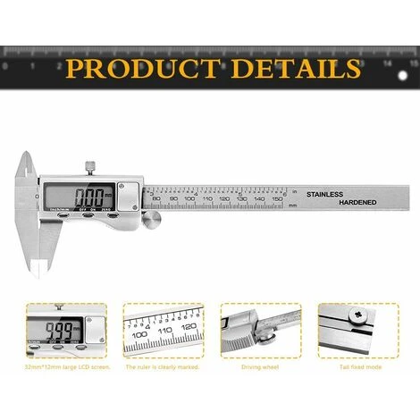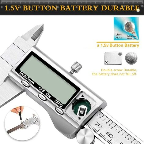 pour s’assurer que les dimensions du matériau sont toujours exactes. Avec sa douceur exceptionnelle, sa molette, sa vis de blocage, son commutateur mm / pouce / fraction, son écran large et clair, sa mise en marche / arrêt automatique.