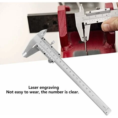 Les étriers à vernier sont utilisés pour mesurer la longueur, la profondeur, l’épaisseur, le diamètre intérieur et extérieur des cylindres.Le pied à coulisse est en acier au carbone, solide et durable.Pied à coulisse de haute précision, facile et pratique à utiliser.La plage de mesure est de 150 mm, la précision de mesure peut atteindre 0,02 mm.Processus d’échelle exquis, l’échelle laser facilite la mesure et la lecture de la valeur.