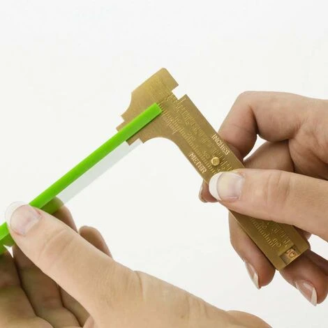 RS Pro 80 mm Vernier, métrique et impérialMesure des feuilles de métal, fils ou autres petits objets avec précision à laide de ces pieds à coulisse non numériques très pratiques. Particulièrement utiles pour vérifier les tailles de fils et les épaisseurs de métal dans la fabrication de bijouxEn laiton massif pour plus de résistance et de longévité Dotés de mâchoires à entailles pour des mesures à lintérieur/extérieur Vernier 1/10e de mm pour plus de précision Combinaison de pouces et de millimètres Longueur de 100 mm