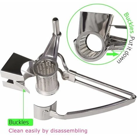 - ACIER INOXYDABLE RÉSISTANT À LA ROUILLE – avec tambours de grille amovibles pour un nettoyage facile. Les lames tranchantes en acier inoxydable font le travail rapidement et garantissent des aliments coupés et déchiquetés proprement. Vous pouvez facilement nettoyer la râpe rotative sous l’eau courante, elle peut également être nettoyée au lave-vaisselle.