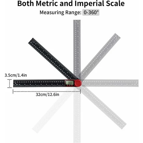 - Mesure à 360 degrés: le mécanisme de charnière de la règle d’angle permet une plage complète de 0 à 360 degrés pour mesurer les angles intérieurs et intérieurs inversés.