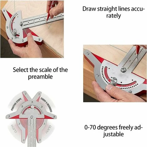 【Réglage multi-angle】La tête de la règle à bois peut être ajustée de 0 ° à 70 ° et verrouillée en place. Il peut répondre à vos besoins de travail quotidiens.