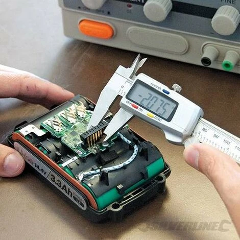 Pied à coulisse numérique à quatre fonctions : mesures internes, externes, de profondeur et d’épaulements. Réglage par vis moletée et remise à zéro en toute position. Lecture facile. Précision à 0,01 mm près.