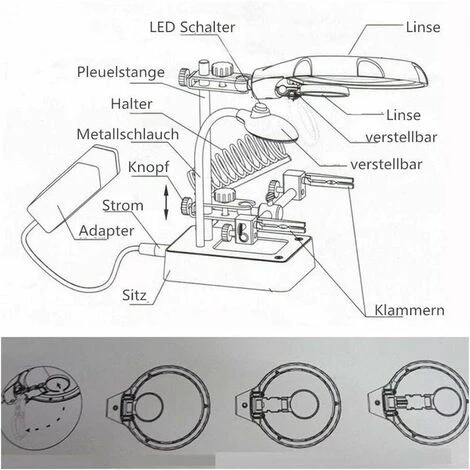 Avec 5 LED lumière, réglable et de l’électricité ou 3 piles AA betriebt (laissez contr?ler paquet ne comprend pas), avec interrupteur, vous utilisez librement dans l’obscurité.