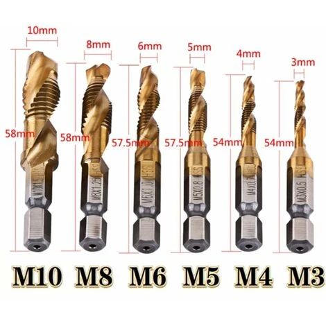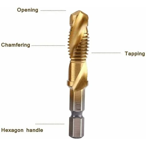 du plastique, du cuivre fin, de l’aluminium et d’autres métaux mous (5-6 mm), pas pour les matériaux durs (par exemple, tôle d’acier) [Améliorer l’efficacité du travail]— forets à marteau Countersink Tap, Le perçage complet, le taraudage, l’ébavurage et le fraisage en une seule opération permettent d’économiser les étapes de traitement et les coûts de temps, d’améliorer l’efficacité