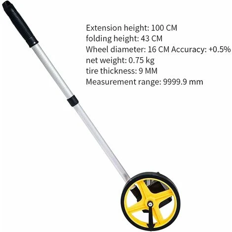 - Convient à un usage commercial et privé, comme roue de mesure de chantier, roue de mesure routière pour mesurer des parcelles de terrain, des terrains de sport, des terrains à bâtir, des prés, des champs, des pelouses, des jardins, des zones agricoles et bien plus encore.